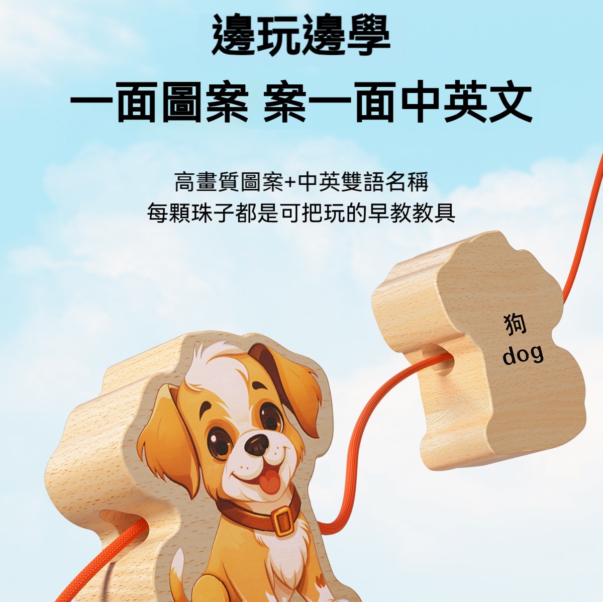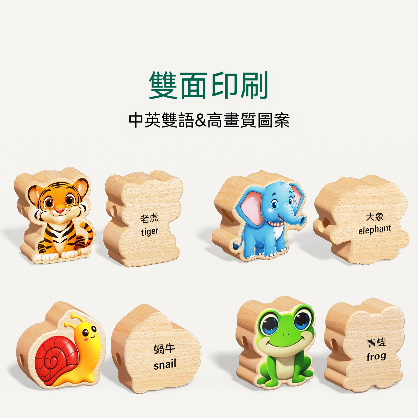 【台灣媽媽首選】會說話的串珠積木!玩出雙語天賦!玩20分鐘=雙語學習1小時✨✅ 中英雙語|正面圖案+反面單詞認知 ✅ 手眼協調|串珠動作訓練精細動作 ✅ 色彩辨識|12種鮮明色系學習 ✅ 親子互動|共同創作提升情感交流